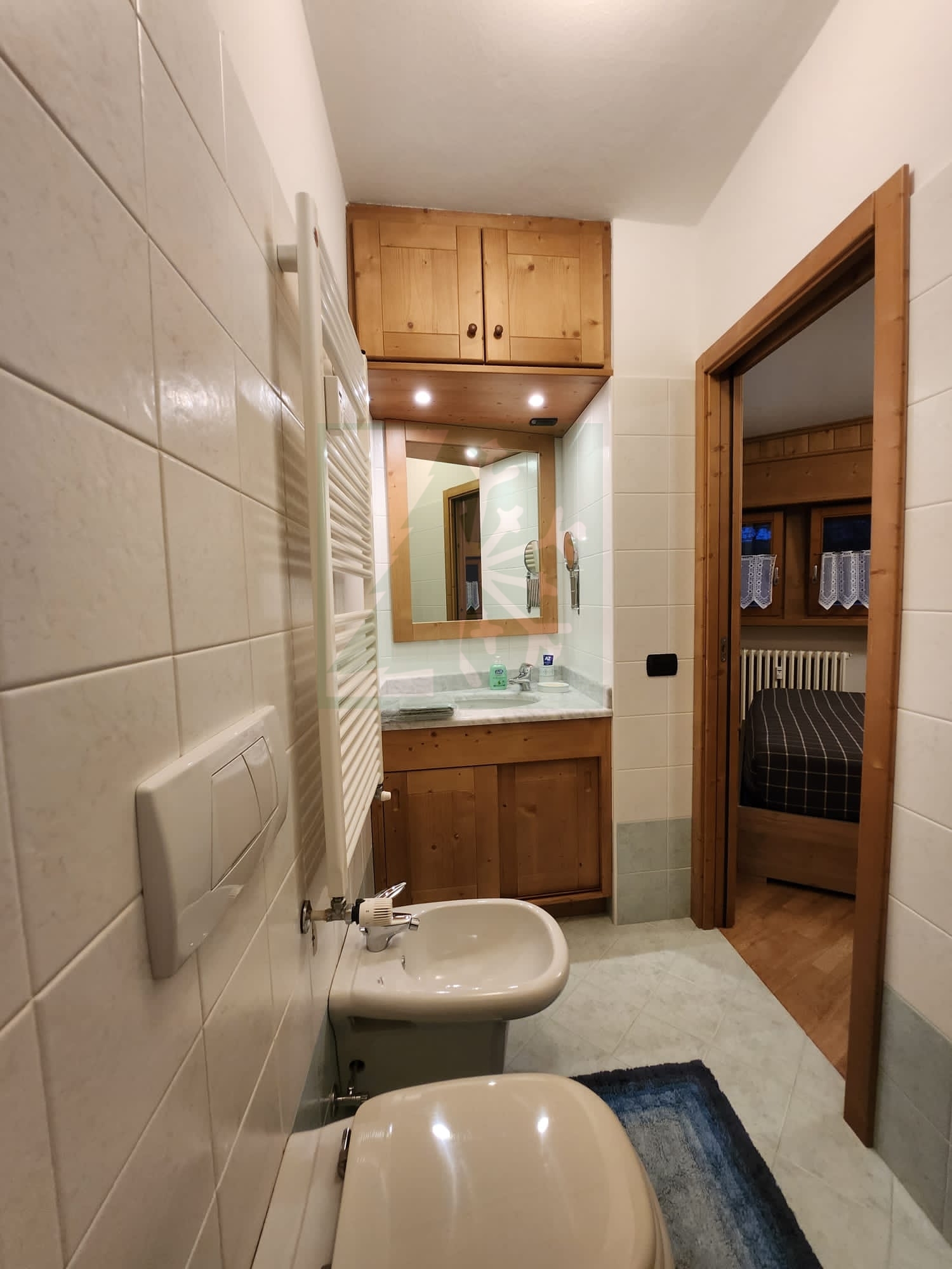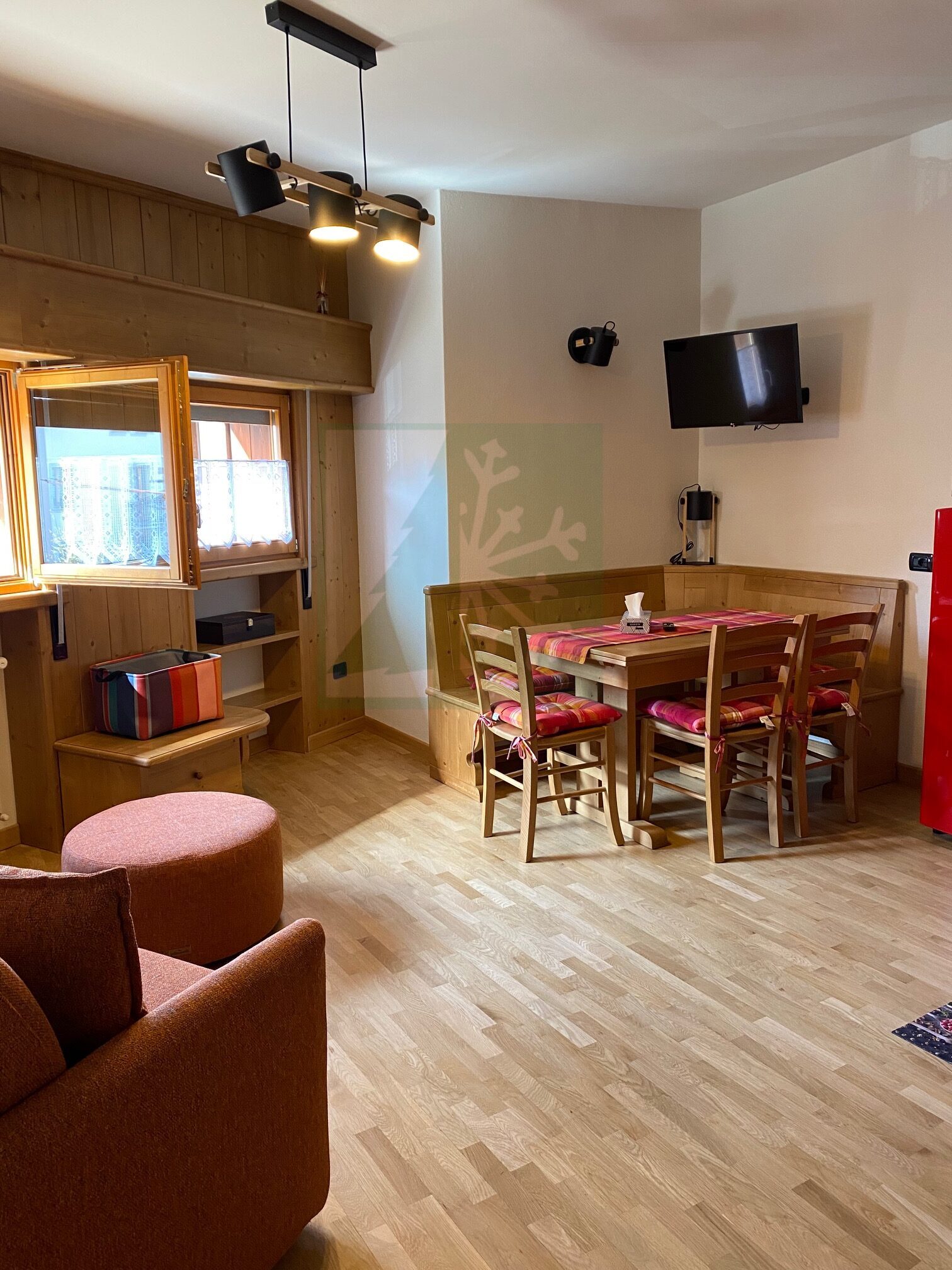 Comodo e centralissimo bilocale  completamente ristrutturato , molto accogliente, con vista sugli impianti sciistici. E’ composto da soggiorno con divano letto matrimoniale, area pranzo/cottura, camera matrimoniale, bagno con doccia. Arredi nuovi e funzionali. Dispone di  un grande terrazzo in condivisione con altra unità immobiliare esposto a nord-est,  armadio porta sci/scarponi privato all’ingresso, ascensore. Accessori: TV sia in soggiorno che in camera, frigo-freezer, lavatrice, microonde, macchina del caffè, bollitore , pavimento in parquet in camera ed in soggiorno. Bagno in gres porcellanato. No posto auto privato. Primo piano con ascensore.