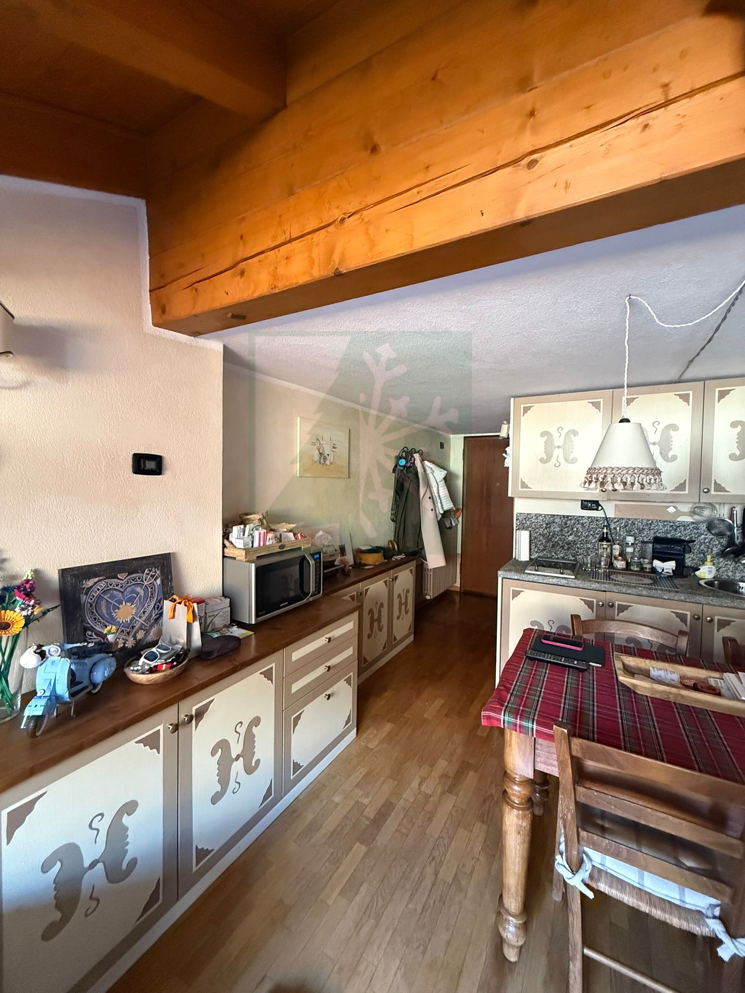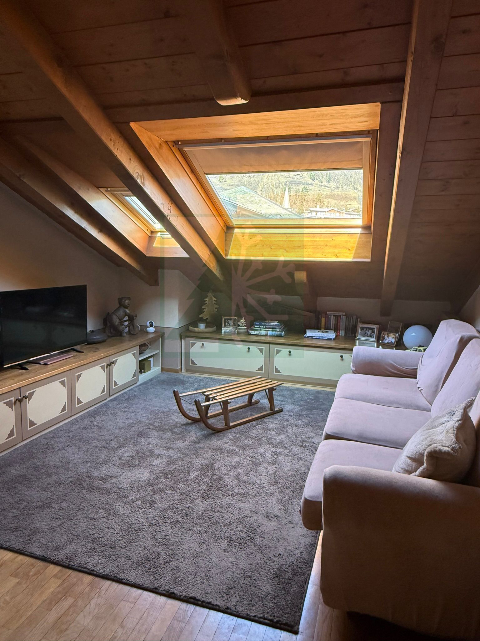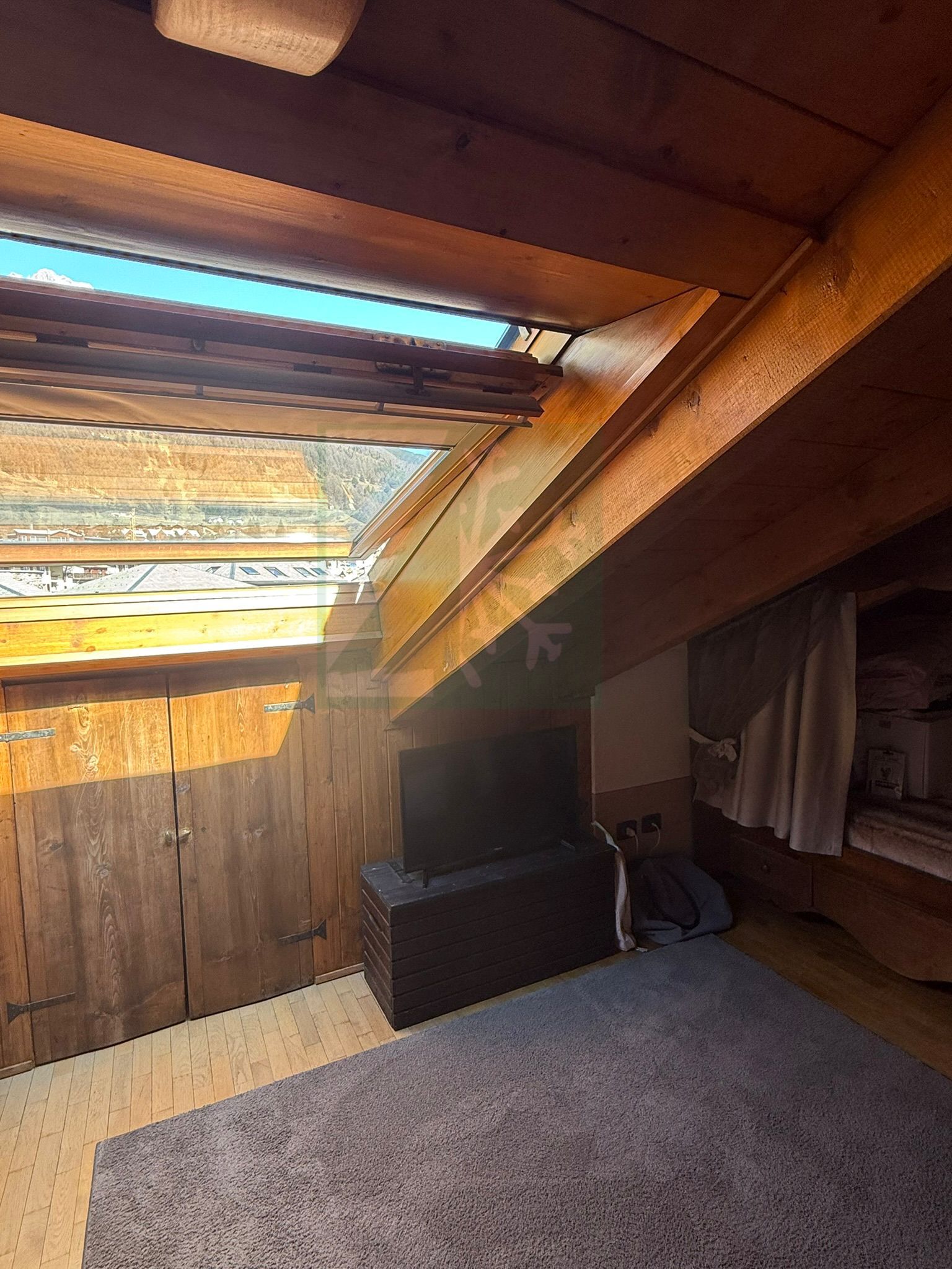 Appartamento mansardato in centro a Bormio. Posto al secondo ed ultimo piano di uno stabile di recente costruzione, affittasi sia per mensilità che per periodi più lunghi, accogliente e ben organizzato bilocale. E’ disposto su due livelli così composti: ingresso, soggiorno con ampio velux con vista sulla montagna Reit, area pranzo/cucina (lavastoviglie), divano letto matrimoniale, bagno con doccia. Al piano superiore ampia camera matrimoniale con grande velux sempre vista Reit con terzo letto singolo. Completa l’offerta un box al piano interrato.