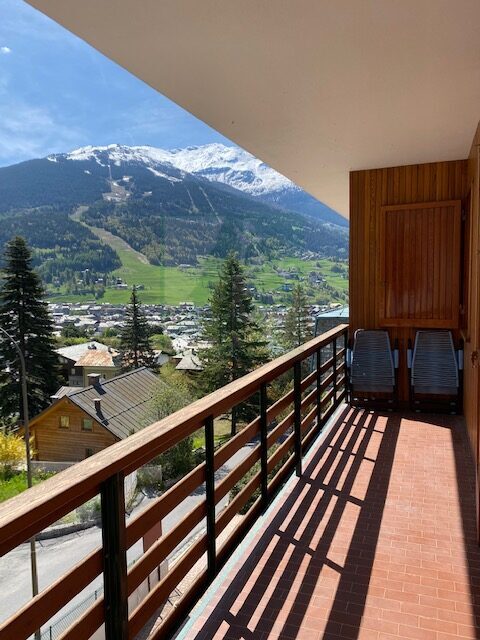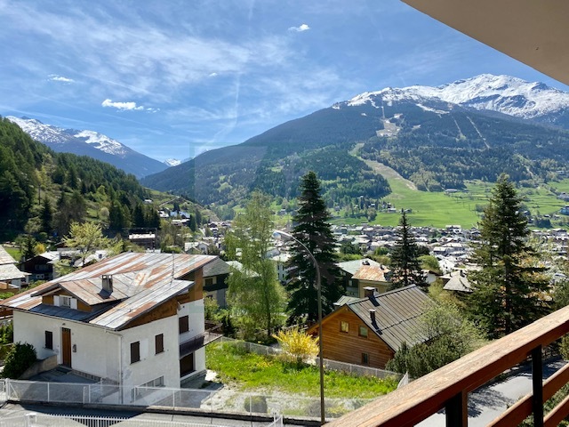 Ampio e comodo appartamento su due livelli, in posizione assolata e molto panoramica a pochi minuti a piedi dal centro di Bormio. E’ composto da ingresso, soggiorno con camino ed area pranzo, balcone esposto ad est con vista meravigliosa, cucina separata ben attrezzata, bagnetto di servizio, scala interna che conduce alla zona notte; due camere da letto molto ampie di cui una matrimoniale ed una doppia, bagno con vasca e doccia, secondo balcone con medesima esposizione ma con metratura maggiore. Luminoso, molto accogliente in tutti i suoi spazi. L’ingresso dell’appartamento è al secondo piano (no ascensore) quindi occupa il secondo ed ultimo piano dello stabile.